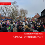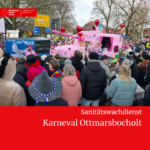 Auch während des großen Karnevalsumzuges am Sonntag waren die Einsatzkräfte gefordert. In der eingerichteten Sanitätsstation im Spieker wurden mehrere Personen behandelt. Darüber hinaus waren Transporte in umliegende Krankenhäuser erforderlich.
