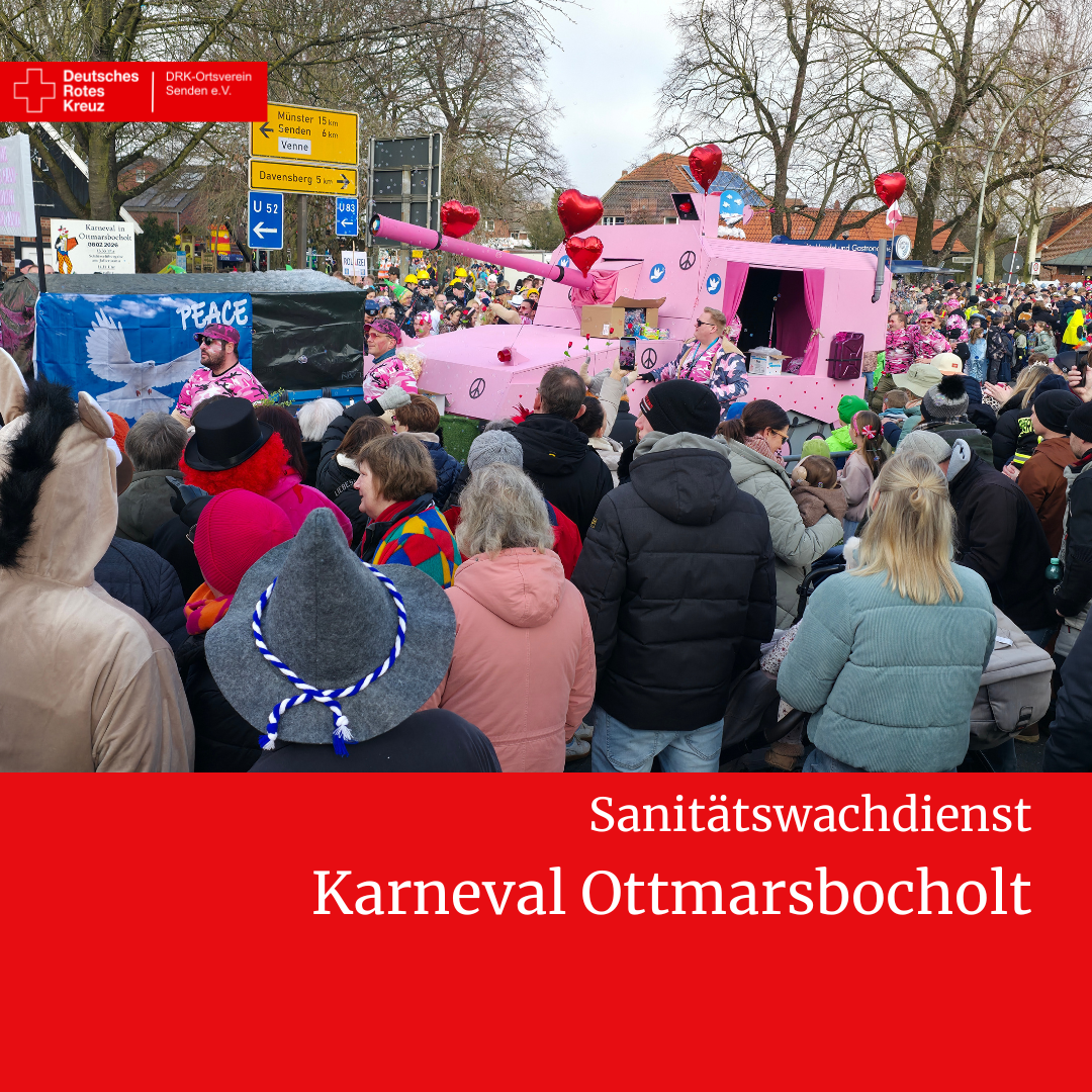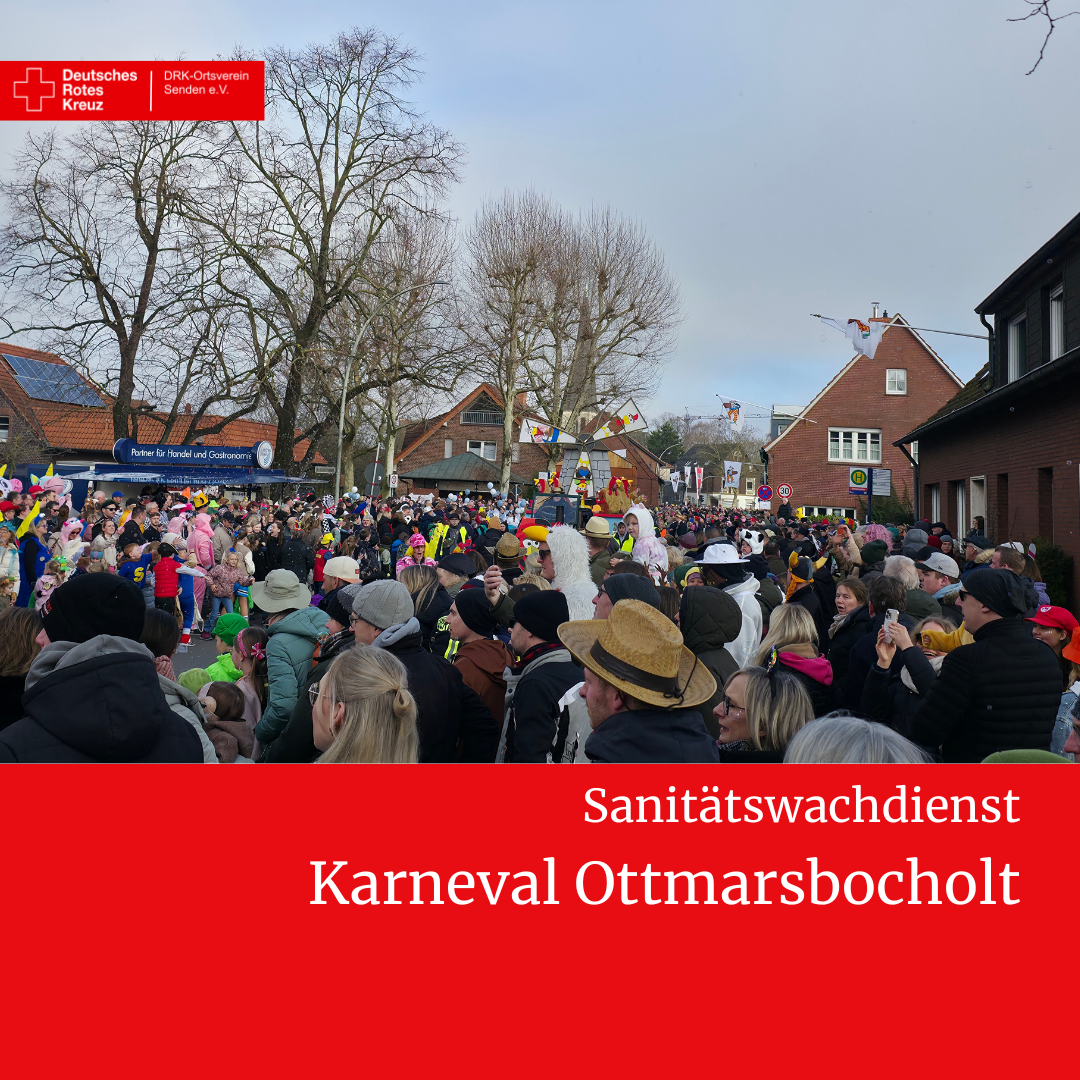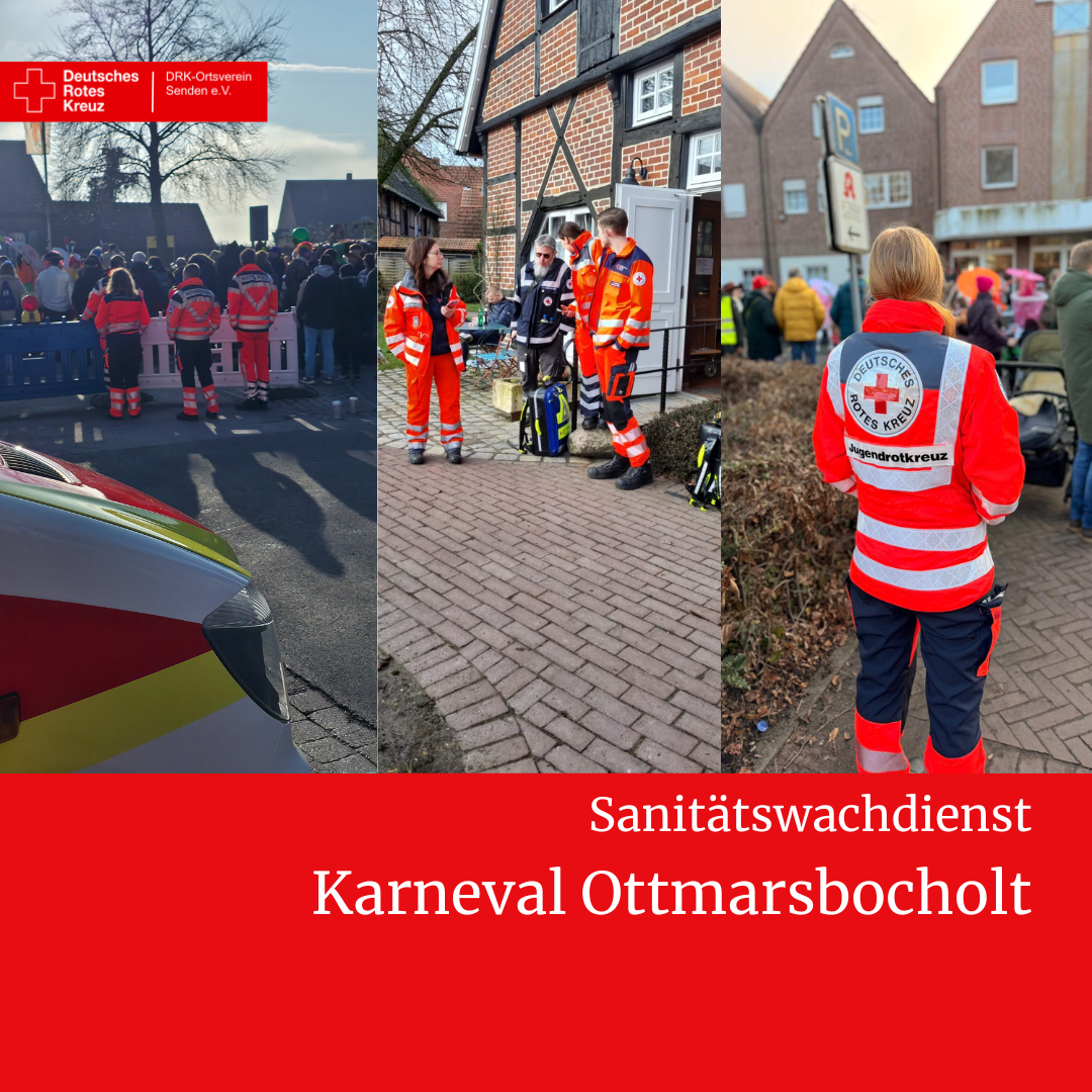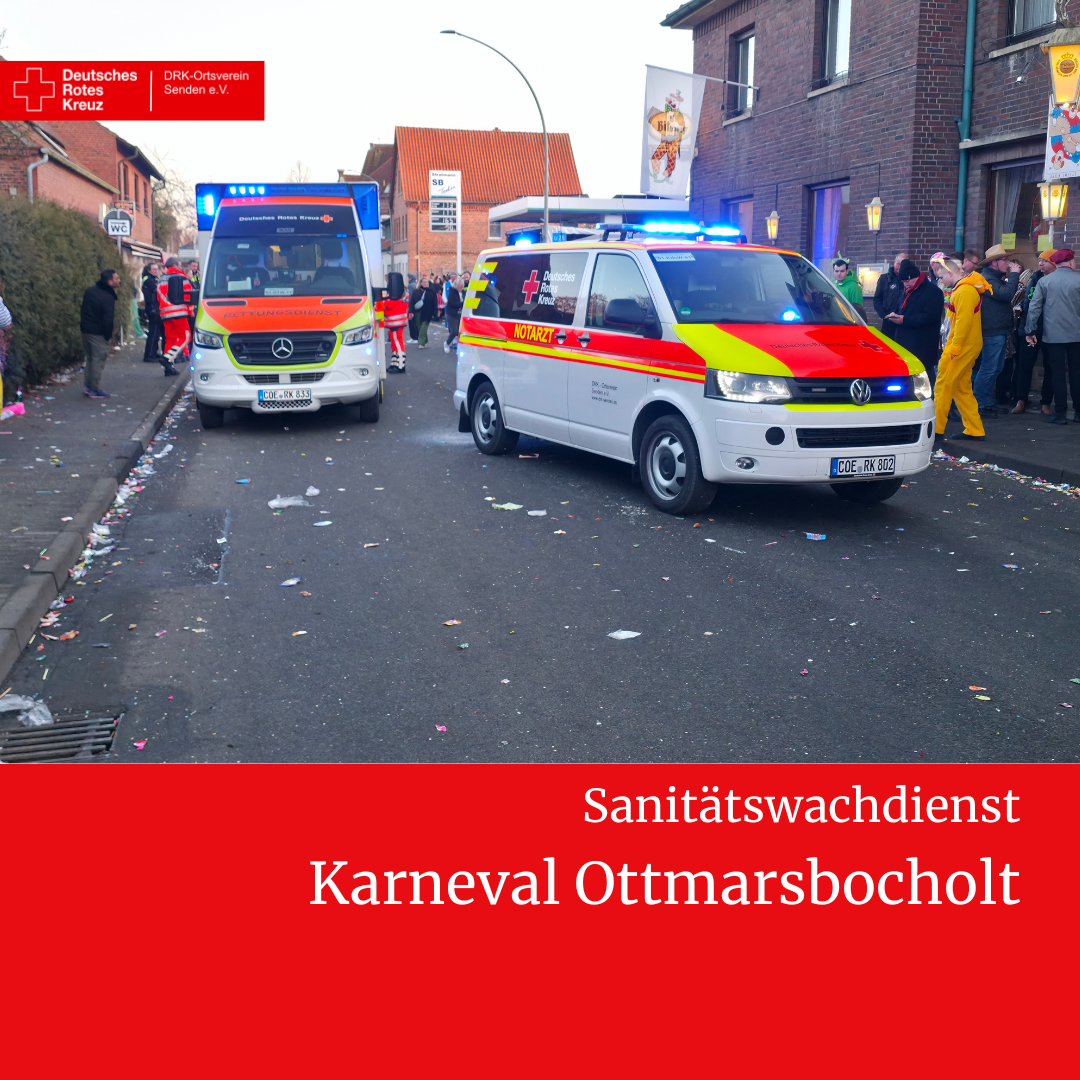 Bereits am Samstagabend beim Pyjamaball sowie am Sonntagabend bei der Party nach dem Umzug waren jeweils bis zu 10 Einsatzkräfte des DRK-Ortsvereins Senden im Dienst. Die Helferinnen und Helfer standen während der gesamten Veranstaltungsdauer bereit, um medizinische Hilfe zu leisten.