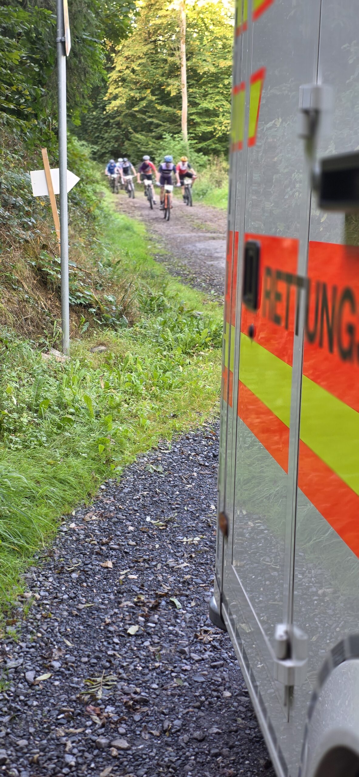 Entlang der Strecke waren mehrere KTWs, mehrere RTWs, ein NEF sowie First Responder-Fahrzeuge positioniert. Die Unfallhilfsstelle im Stadtzentrum von Plettenberg lag direkt am Zieleinlauf, um im Bedarfsfall schnellstmöglich medizinische Hilfe für die Teilnehmer:innen bereitzustellen.